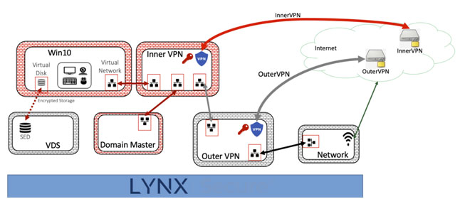 Traditional virtualization solutions are generally as vulnerable as the OSes that they are hosting and provide little protection against cyber-threats or data exfiltration. At no time is any sensitive data in clear text form in the unsecure domain.